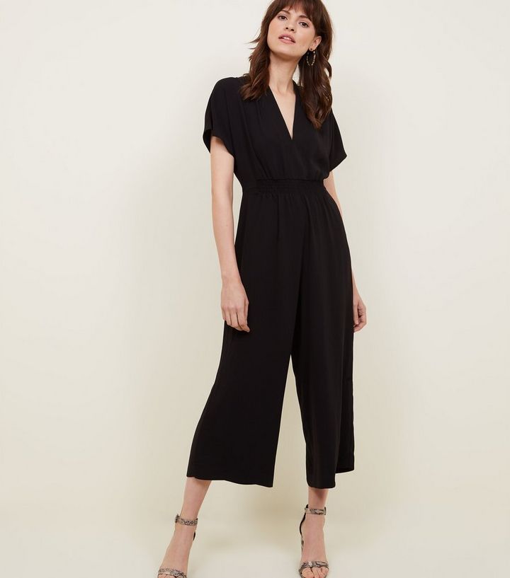 Schwarzer Jumpsuit Mit Verkurzter Lange Und Elastischem Taillenbund New Look