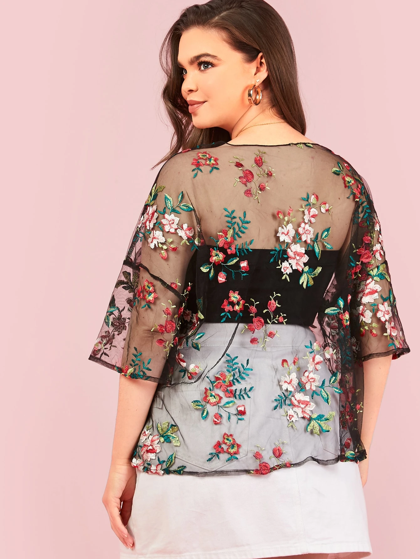 Grosse Grossen Top Mit Blumen Stickereien Netzstoff Ohne Bandeau Aktuelle Trends Gunstig Kaufen Shein Deutschland