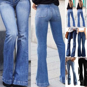 Damen Denim High Waist Flare Jeans Skinny Pants Retro Vintage Schlag Hose Ebay