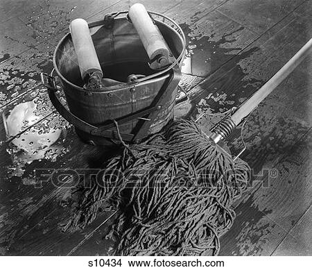 Nasse Wischmop Waschen Wischeimer Putzzeug Seife Fruher Bild S Fotosearch