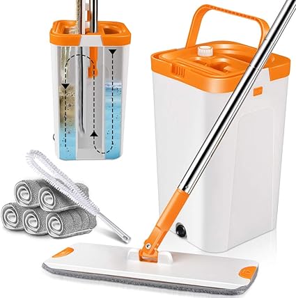 Mastertop Bodenwischer Wischmopp Set Mit Eimer 6 Wischmop Pads Wischer Mit Auswringfunktion Zum Waschen Und Trocknen Von Boden Orange Und Weiss Amazon De Kuche Haushalt