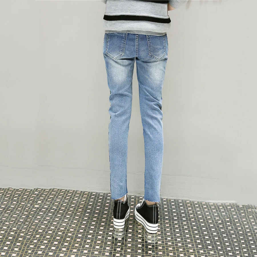 Casual Pants Skinny Stripe Jeans Woman Low Waist Summer Damen Ripped Jeans Women Trousers Con Applicazione Push Up Jean 80v0008 Striped Jeans Women Ripped Jeans Womenjeans Woman Aliexpress