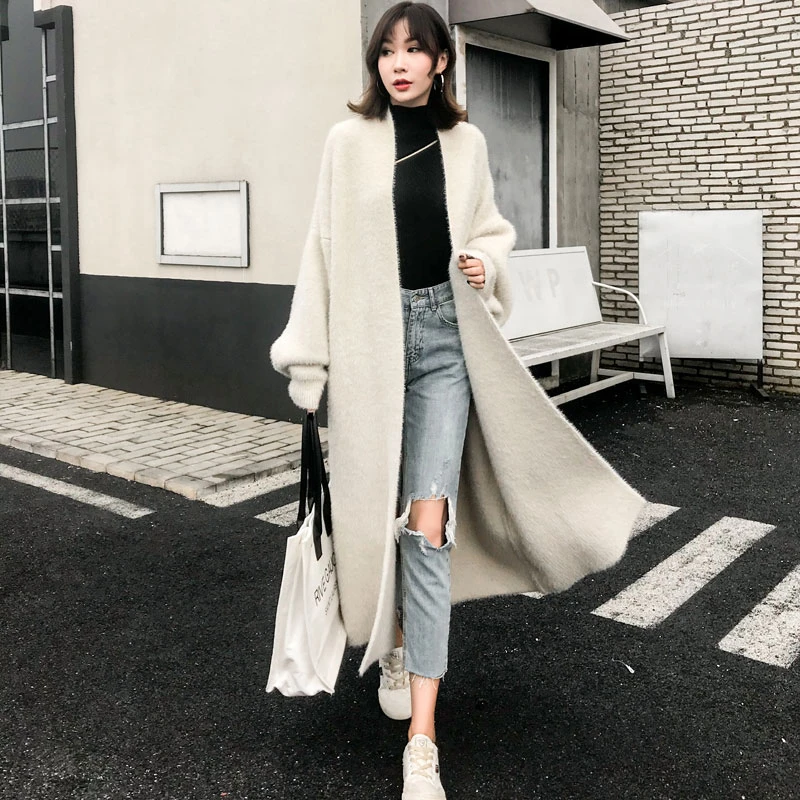 Women Winter Loose Beige Knitting Trench Coat Ladies Velvet Long Coat Windbreaker Woman Oversize Open Stitch Clothes Trench Aliexpress