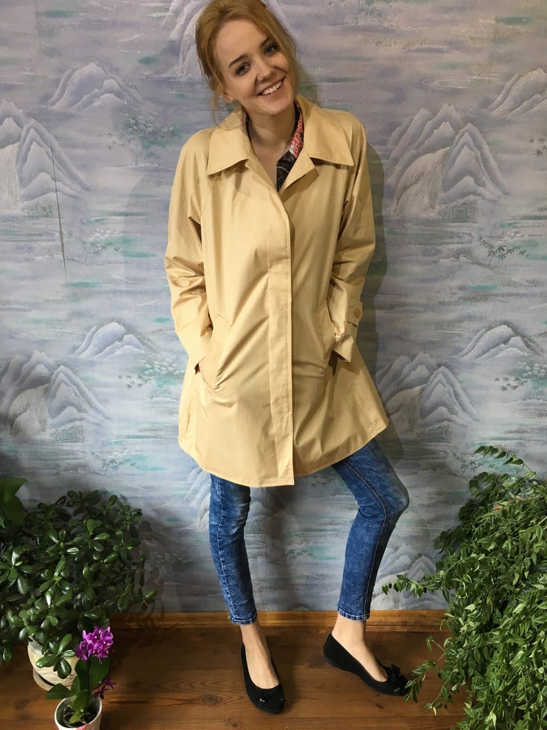 Womens Trench Coat Vintage Trench Coat Sand Beige Coat Midi Etsy