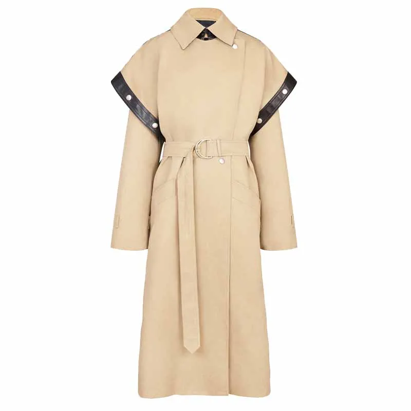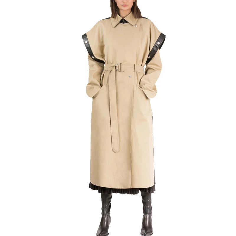 Oem Women Oversized Beige Belted Trench Coat Buy Square Shoulder Removable Sleeve Women Coat Turn Down Collar Long Sleeve Overcoat Side Metal Press Studs Leather Trech Coat Product On Alibaba Com