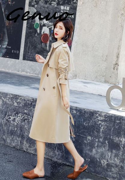 Genuo New Trench Coat For Women Plus Size Black Beige Pink Double Breasted Female Casual Oversize Long Coat Women 5xl 6xl 7xl From Homedress 73 Dhgate Com