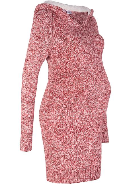 Kuscheliges Umstandskleid Mit Kapuze Rot Weiss Meliert