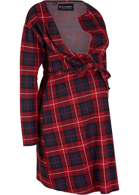Umstandskleid Mit Bindeband Und Stilleinsatz Dunkelblau Rot Kariert