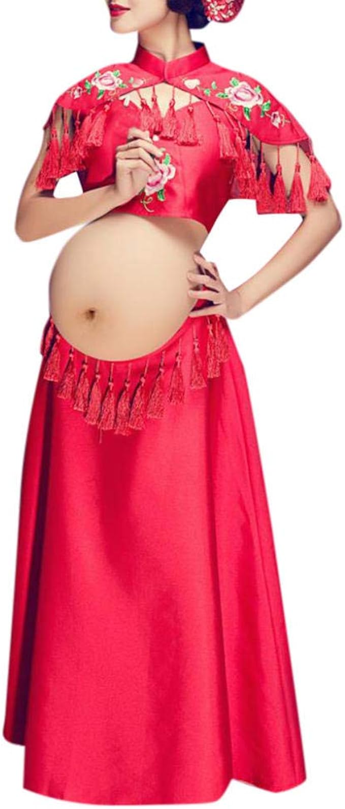 Dfebv Umstandskleidung Kleider Fur Schwangere Frauen Fotografie Requisiten Schwangerschaftskleid Kurzarm Bedruckte Oberteile Lange Kleider Rot Sexy Umstandskleid Robe Grossesse Amazon De Bekleidung