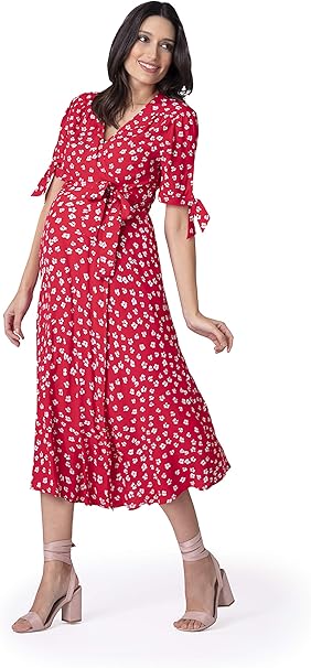 Seraphine Damen Midi Wickelkleid Umstandskleid Rot Amazon De Bekleidung