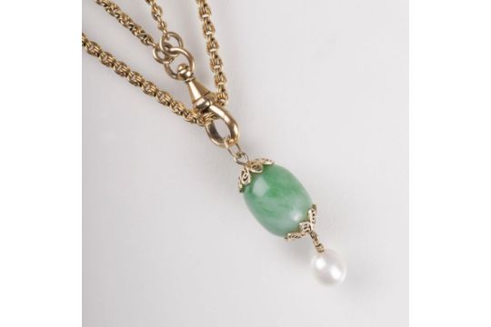 Lange Gold Kette Mit Ei Anhanger 14 Kt Gg Kette Undeutl Gest Pampelformiger Gruner Anhanger M