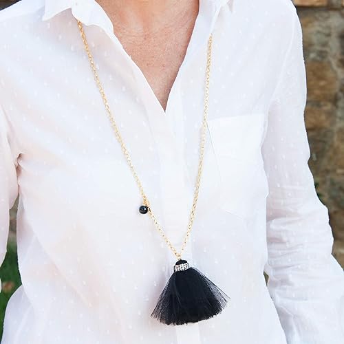 Lange Halskette Frau Schmuck Mit Goldkette Und Anhanger Quaste Frasen Tull Farabe Schwarz Amazon De Handmade