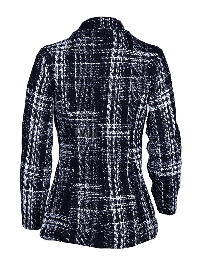 Black Blazers Women Tweed Turndown Collar Long Sleeve Slim Fit Casual Blazer Milanoo Com