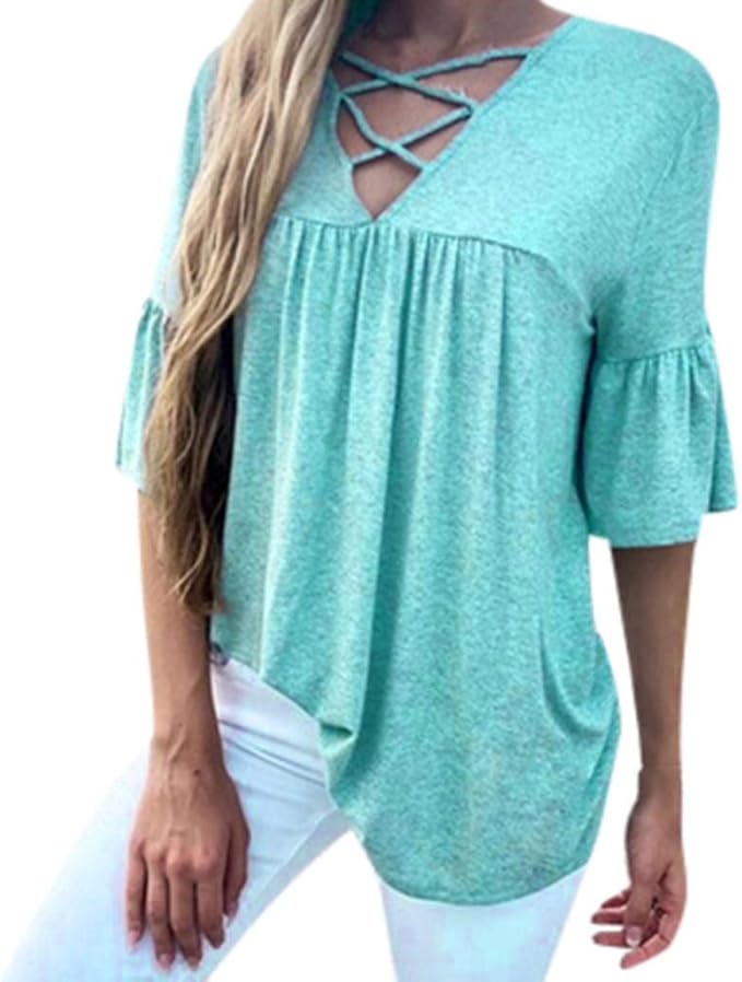 Berimaterry Damen Kurzarm V Ausschnitt Cross T Shirt Tops Casual Einfarbig Lose Tshirt Sommershirt Mode Grosse Grossen Plissee Shirt Bluse Ruschen Kurzarmliges Oberteil Amazon De Bekleidung