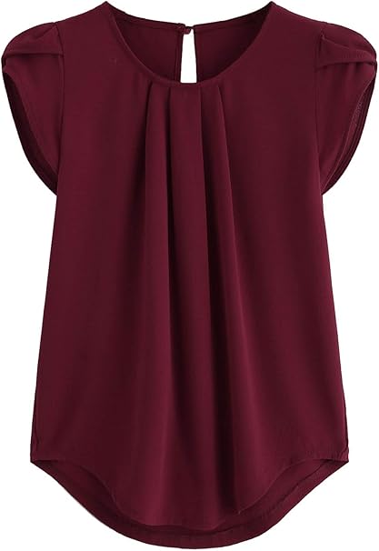Damen Bluse Mit Rundhalsausschnitt Von Milumia Plissee Oberteil Flugelarmel Gebogen Mit Schlussellochrucken Amazon De Bekleidung