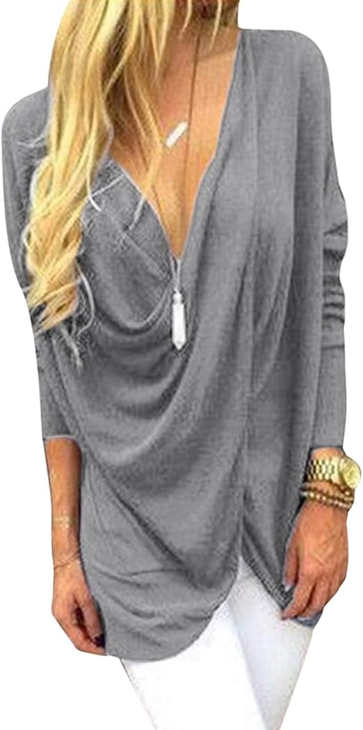 Kenoce Damen Langarmshirt Sexy T Shirt Asymmetrisch Lose Pullover Sweatshirt Plissee Oberteil Tops Shirts B Grau Xxl Amazon De Bekleidung