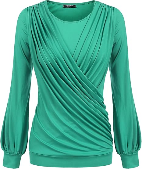 Zeagoo Damen Oberteil Dehnbar Rundhalsausschnitt Lange Armel Plissee Bluse Amazon De Bekleidung