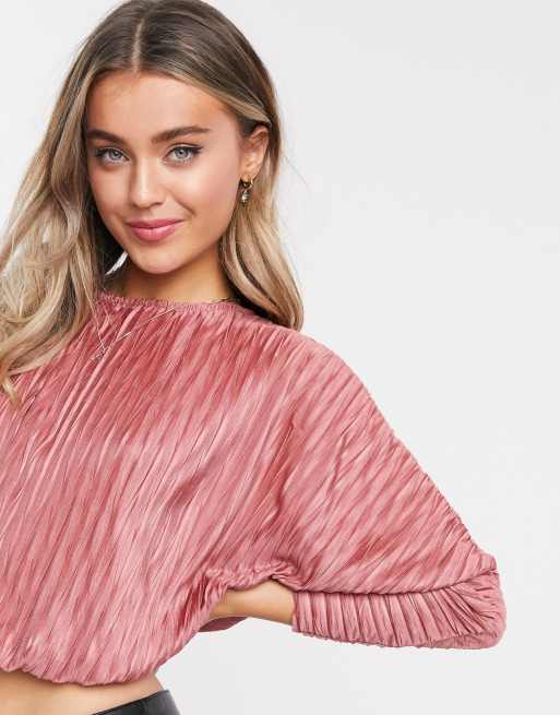 Asos Design Plissee Oberteil In Rosa Mit Bubble Saum Und Fledermausarmeln Asos