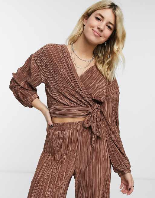 Asos Design Langarmliges Plissee Oberteil In Weinrot Kombiteil Asos