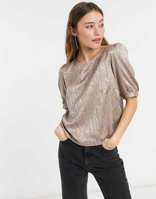 Pieces Plissee Oberteil Mit Puffarmeln In Taupe Evesham Nj