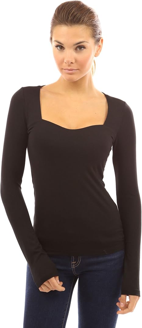Pattyboutik Damen Stretch Pullover Mit Viereckigem Ausschnitt Und Langen Armeln Schwarz S 36 38 Amazon De Bekleidung