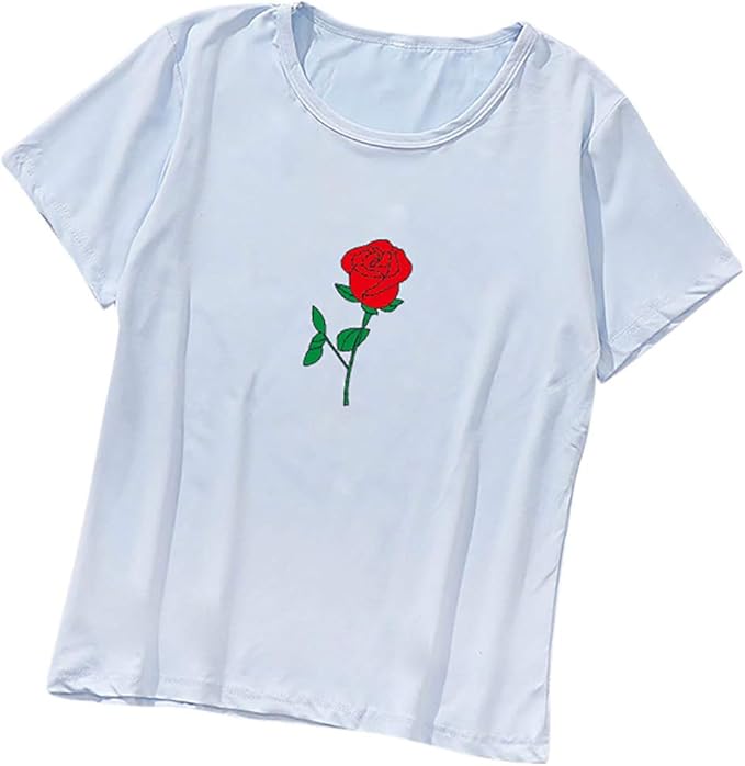Ulanda Damen Sommer Shirt Teenager Madchen Casual Baumwolle Bluse Loose Kurzarm Rose Druck Muster Nothing Tops Hemd Oberteile Pullover T Shirt Amazon De Bekleidung