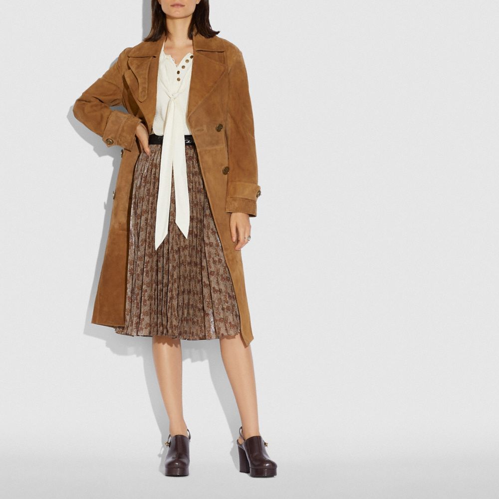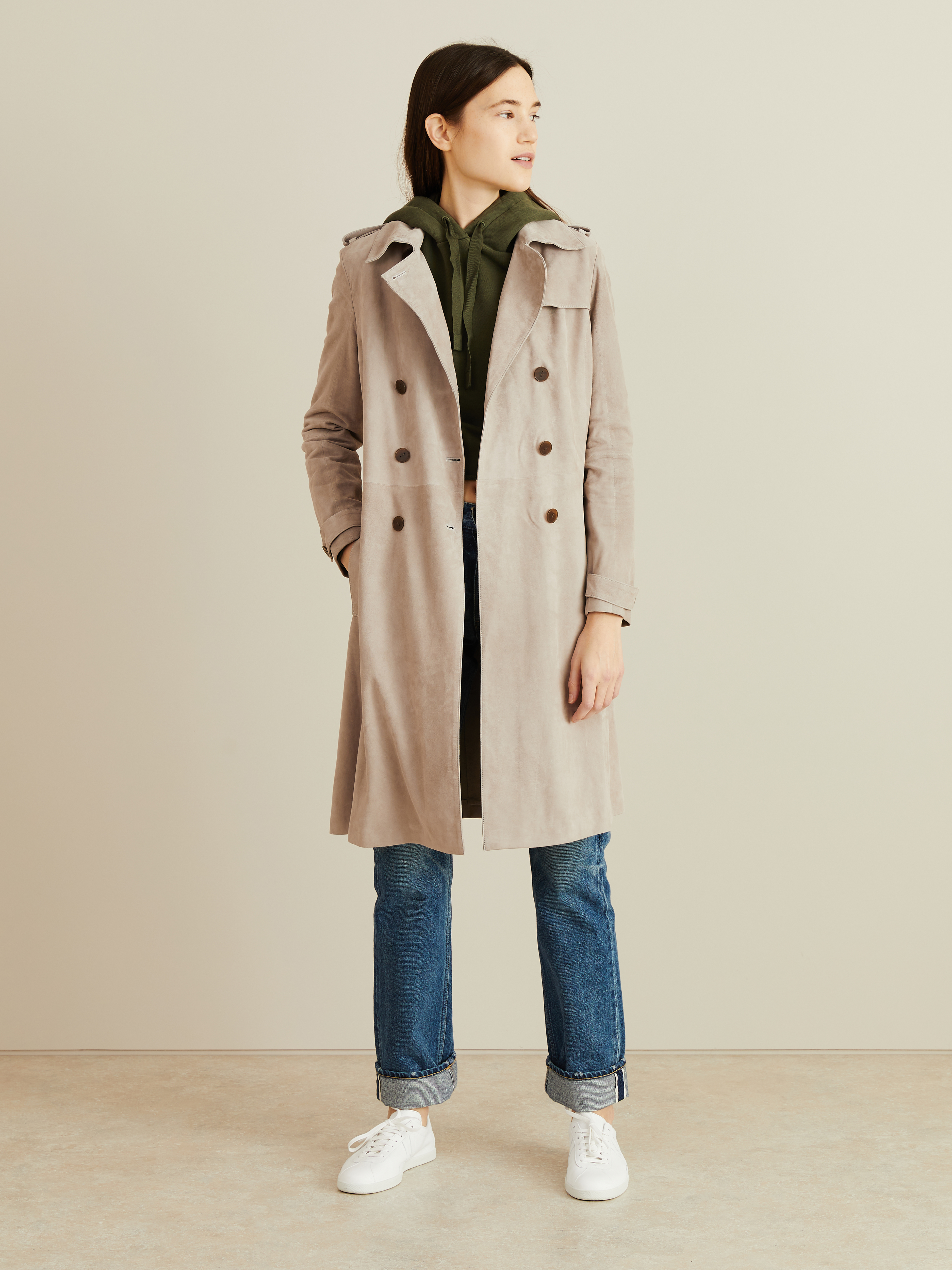 The Trench Coat The Evolution of the Trench All Gifts Women's Gifts All Gifts Beauty Personalised Gifts Men's Gifts All Gifts Grooming Personalised Gifts Children's Gifts All Gifts Baby Gifts Sign out Sign out of My Account?. This ultrachic trench coat, composed of the vegan suede, features long sleeves and a notched collar that tops the open front with a sash belt and matching buckle Diagonal welt pockets, shoulder epaulets, and a storm flap around the back finish the look Unlined. Suede Trench Coat Trench Coat Outfit Double Breasted Trench Coat Mantel Trenchcoat Long Jackets For Women Polo Ralph Lauren Cold Weather Outfits Women Brands Clothes For Women Suede Trench Coat A luxurious update to the timeless trench silhouette this statementmaking coat is made from ultrasupple goat suede in the season's earthy brown hue.