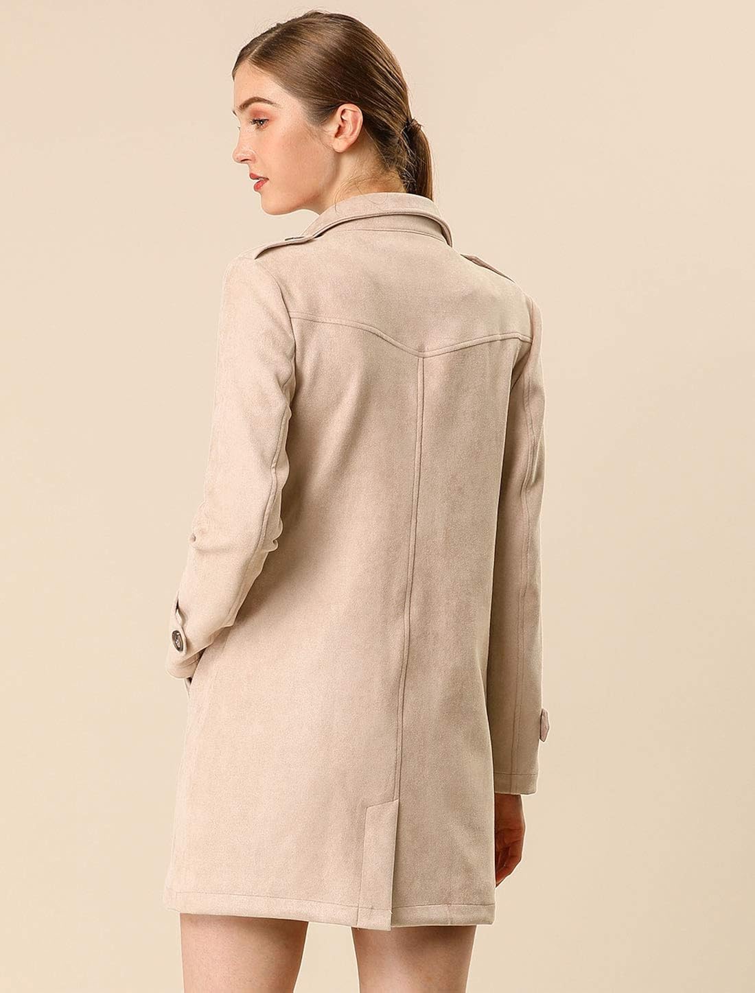 Allegra K Damen Langarm Zweireiher Wildleder Trenchcoat Mantel Amazon De Bekleidung