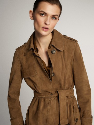 Trench Jacke Aus Wildleder Damen Massimo Dutti
