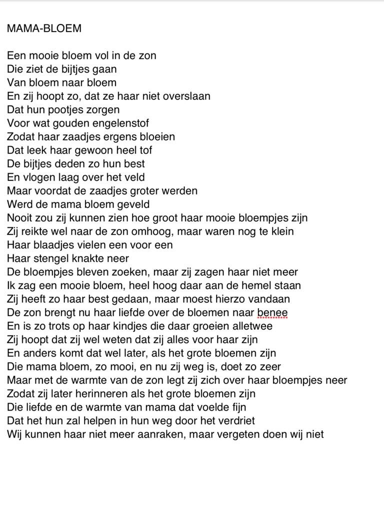 Afscheidsgedichten Sur Twitter Een Gedicht Voor Twee Kindjes Waarvan Hun Moeder Binnenkort Er Niet Meer Zal Zijn Mama Bloem Http T Co Nsqpv0thpc
