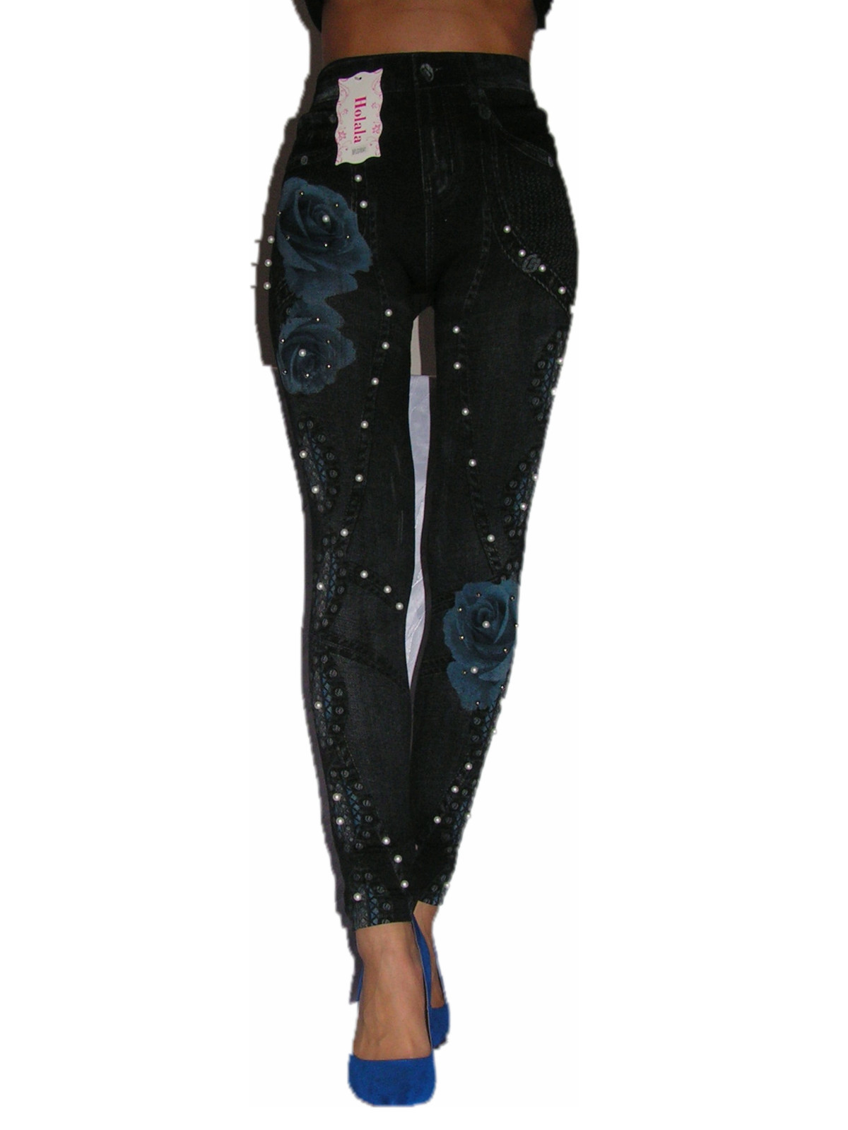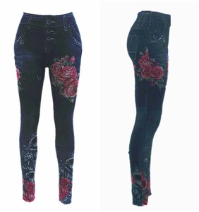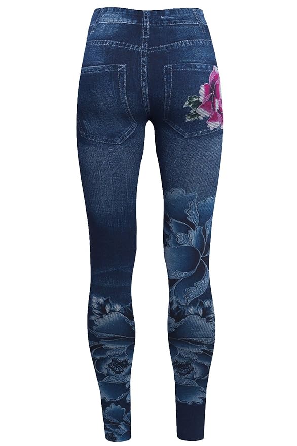 Superweiche Und Elastische Thermo Leggings In Jeans Optik Mit Blumenmuster Jessyss