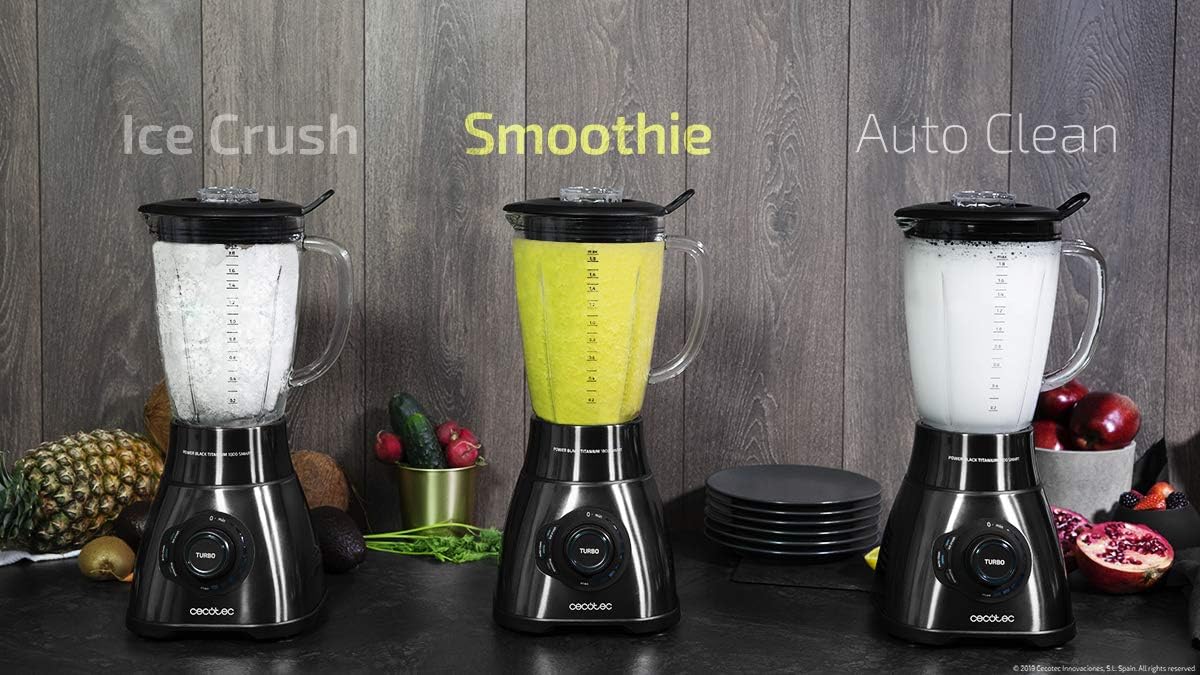 Amazon De Cecotec Power Black Titanium 1800 Smart 1800w Amerikanischer Standmixer Mit Hitzebestandiger Glaskanne Und 6 Titanklingen Kommt Mit 3 Programmen Digital