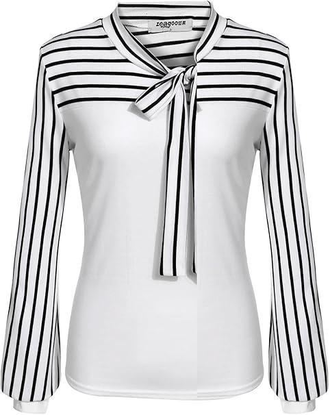 Zeagoo Damen Schleife Gestreiftes Shirt Schluppenbluse Langarmshirt Blusen Obertail Fruhling Herbst Hemd Eu 40 L Weiss Amazon De Bekleidung