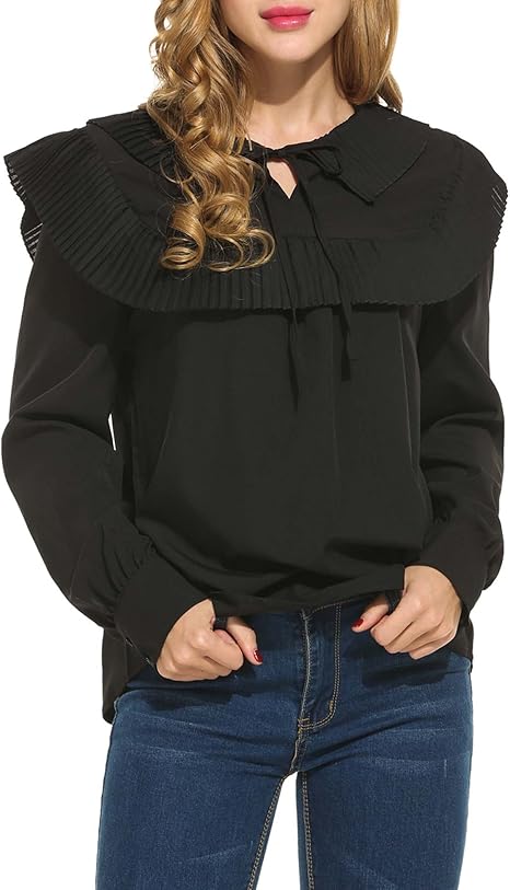 Zeagoo Damen Plissee Bluse Tunika Vintage Lace Up Langarm Blusentop Mit Plissee Rusche Ruschenbluse Casual Faltenbluse Schwarz Amazon De Bekleidung