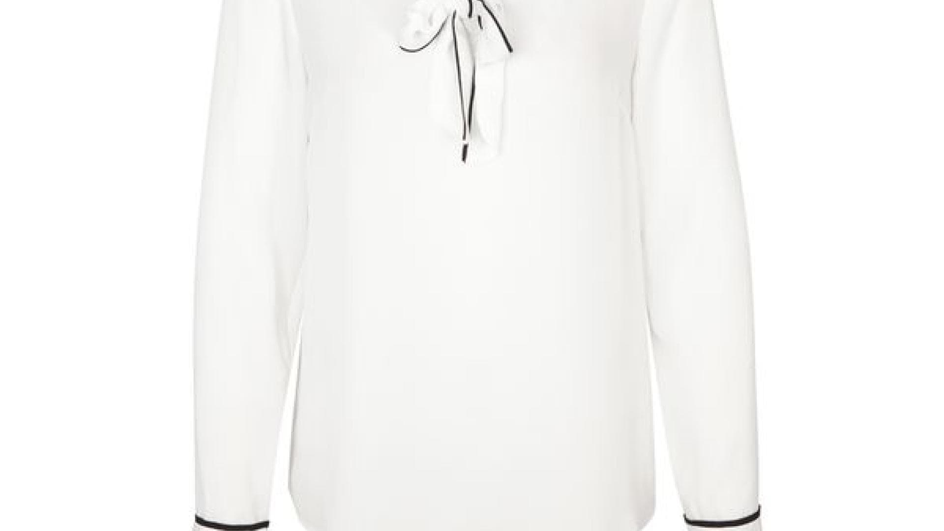Weisse Schluppenbluse Mit Schwarzer Schleife