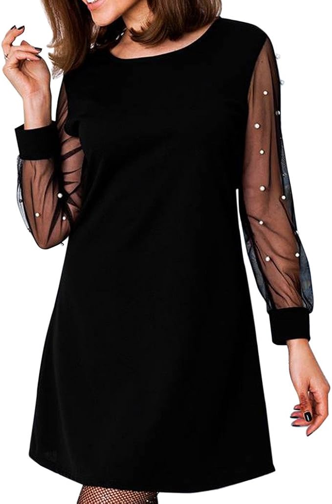 Kleid Damen Elegant Kleider Abendkleider Kurzes Langarmkleid Strandkleid Minikleid Freizeitkleid Partykleid Mit Mesh Perlstickerei Frauen Langarm Casual Loose Cocktailkleid Amazon De Bekleidung