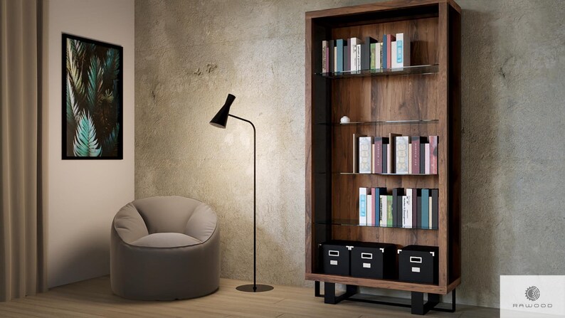 Rustikale Vitrine Eiche Bucherregal Vitrinenschrank Holz Etsy
