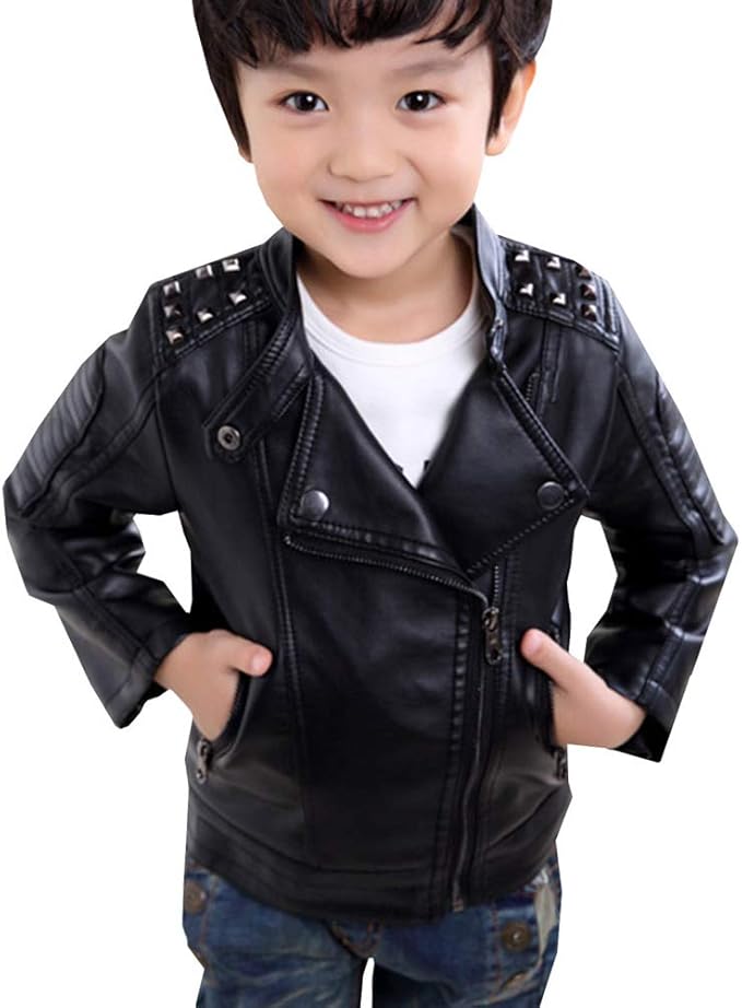 Lshel Kinder Lederjacke Kragen Motorrad Leder Mantel Fruhjahr Herbst Winter Jungen Gesteppte Bikerjacke Schwarz Ohne Futter 122 128 Amazon De Bekleidung