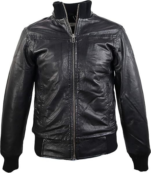 Aviatrix Herren Lederjacke In Schwarz Bomber Stil Hoher Kragen Amazon De Bekleidung