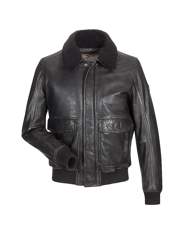 Uzwei Lederjacke Aviator Mit Bundchen Schwarz Lederjacken
