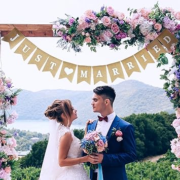 Amazon De Vintage Leinen Just Married Girlande Banner Sackleinen Hochzeit Banner Herz Muster Romantische Hochzeit Dekoration Fur Hochzeit Brautdusche Wimpelkette Wedding Bunting