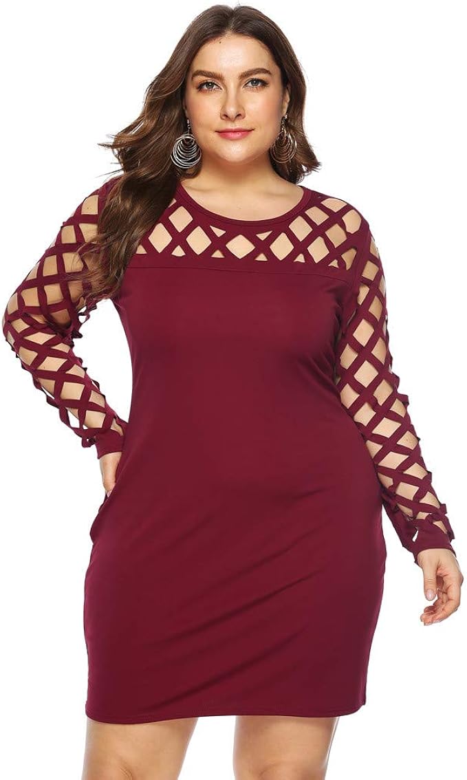 Mayogo Kleid Damen Sommer Kurz Grosse Grossen Fishnet Mesh Hollow Out Langarm Minikleid Etuikleid Bleistiftkleid Amazon De Bekleidung