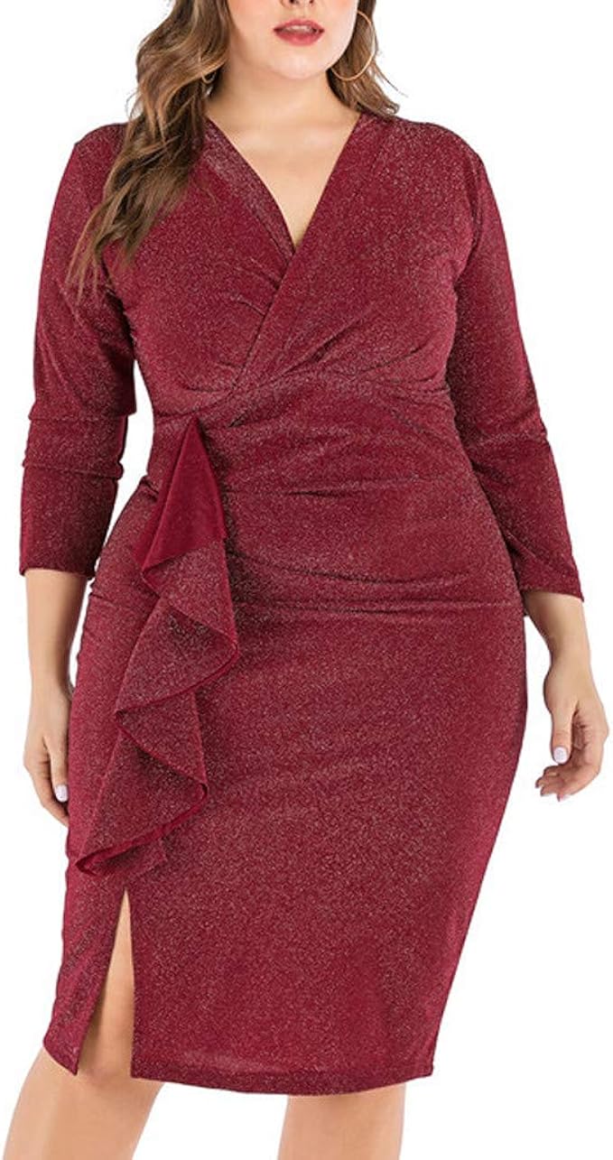 Iymitz Grosse Grossen Kleid Damen Kreuz Sexy V Ausschnitt Eng Abendkleid Damen Glitzer Etuikleid Business Kleider Bodycon Cocktailkleid Rot Xl 5xl Amazon De Bekleidung