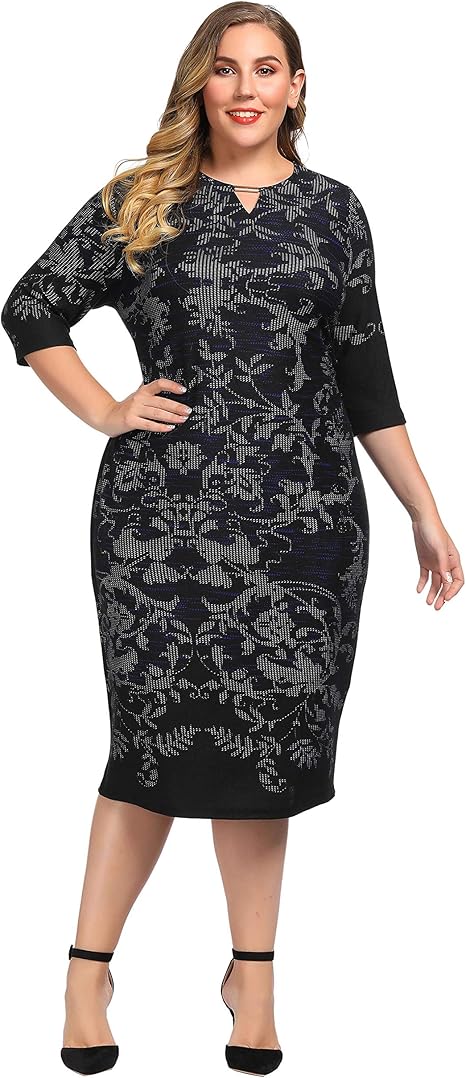 Grosse Grossen Etuikleid Mit 3 4 Armeln Etuikleid Kleidung Damenmode Kleider