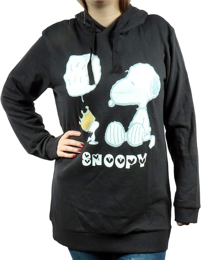 Tvm Europe Gmbh Longsleeve Damen Pullover Extra Lang Mit Kapuze Snoopy Und Minnie Mouse Schwarz Grau Amazon De Bekleidung