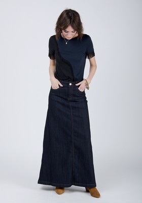 Langer Jeansrock Indigoblau Maxi Rock In Ausgestellter Form Ebay