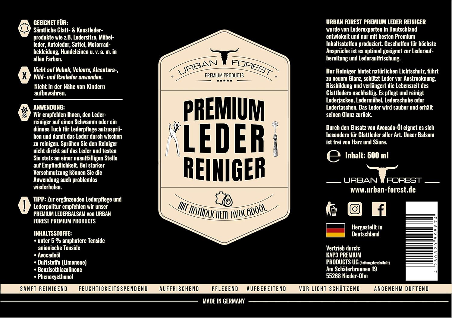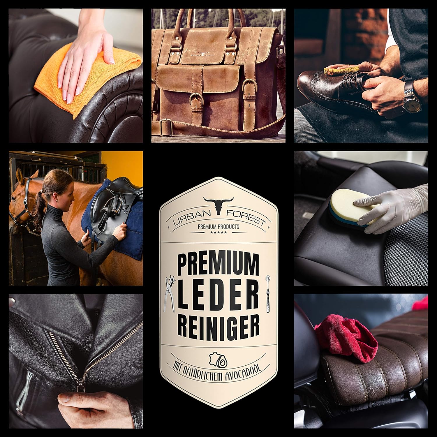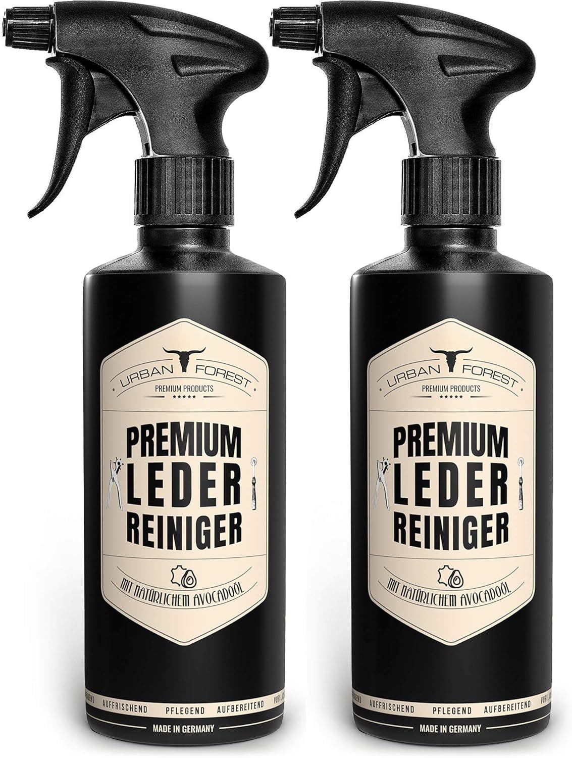 Urban Forest Premium Lederreiniger Optimal Zur Reinigung Von Leder Lederpflege Fur Auto Mobel Motorradbekleidung Handtaschen Ledercouch Schuhe Sattel Mit Naturlichem Avocado Ol Set 2 X 500ml Amazon De Haustier