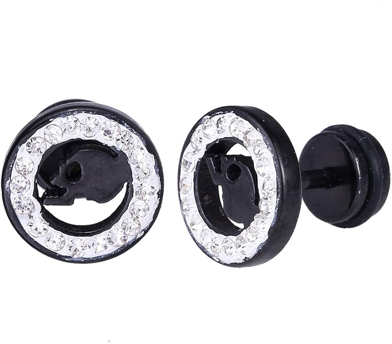 Amazon Com Fake Plug Piercing Stainless Steel Black White Zirconia Edge Totenkopf Skull Black Jewelry