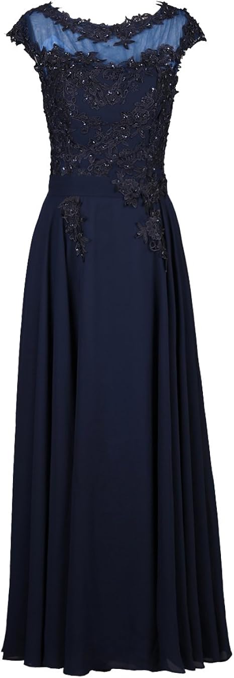 Misshow Damen Elegant Brautmutterkleider Grosse Grossen Spitzen Chiffon Abendkleid Midilang Navyblau 24w Amazon De Bekleidung