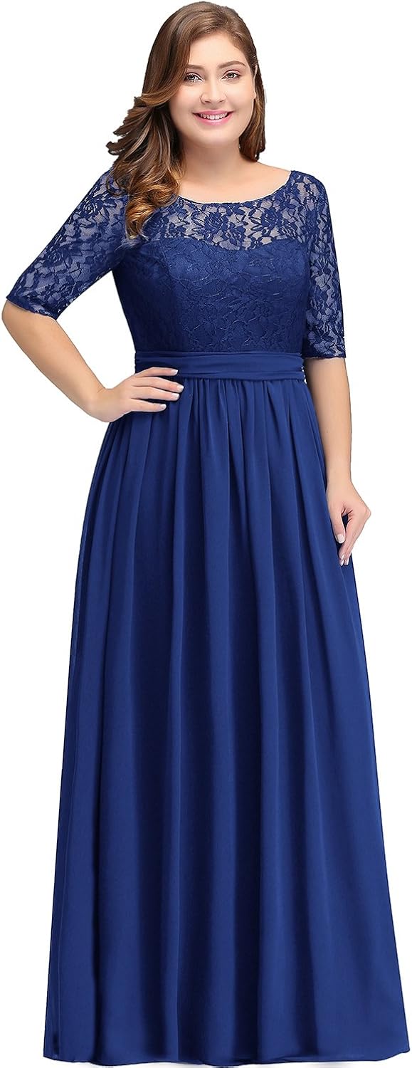 Damen Misshow Damen Ubergrosse Abendkleid Spitze Chiffon Mit Armel Elegant Lang Ballkleid Bekleidung Cerocero Mx